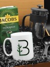 Kişiye Özel Harf Detaylı Kupa & French Press & 250 Gram Jacobs Monarch Filtre Kahve Hediye Seti